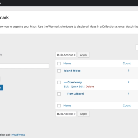 Create additional input fields that appear underneath the Map Editor. Any Meta that has been input is displayed on the Map Details page, and can also be displayed by the Shortcode.